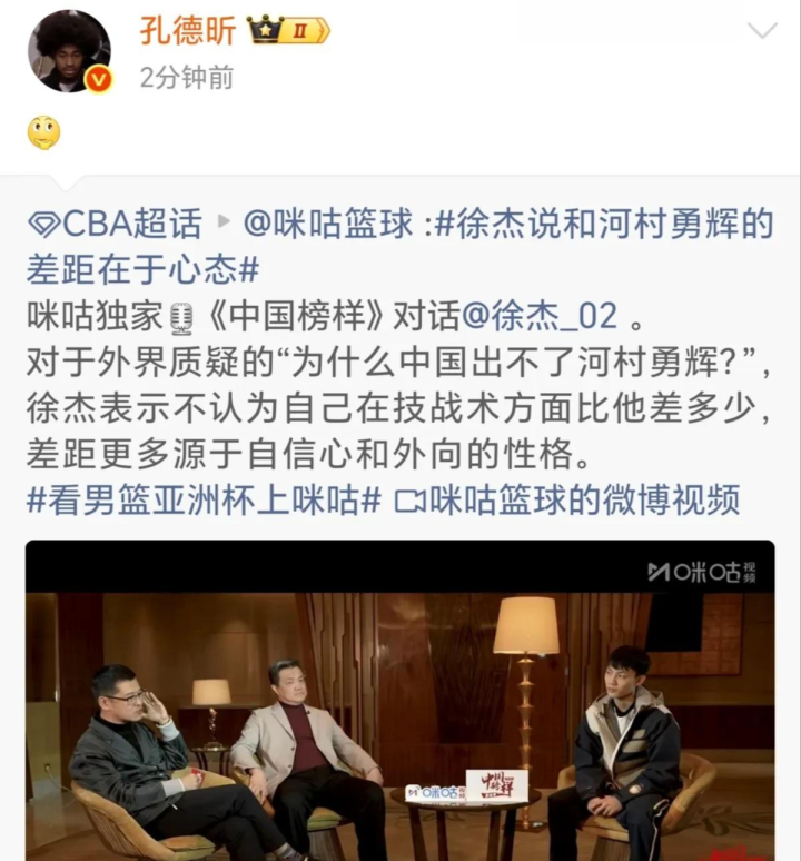 也就是说,徐杰说河村勇辉比他没有厉害多少,很大程度是因为朱总从NBA发展联盟找来的小外援能力确实也不怎么样,而对比之下, 徐杰的能力在国内后卫球员中已经算很不错的了。