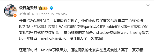 还是那句话,Knight顶级尽力。但这俩队的比赛实在是观赏性太高了,真好看!