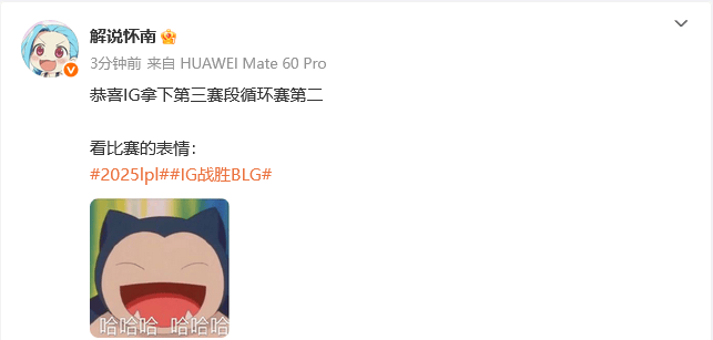 恭喜IG拿下第三赛段循环赛第二!看比赛的表情: