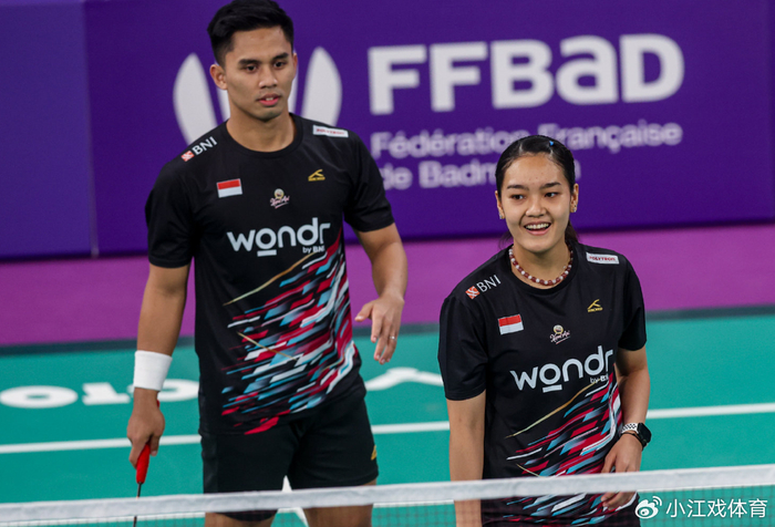 面对从未战胜过的对手,西亚纳维/马尔瓦首局一上来,就拿出了和凤凰组合搏命的姿态,接发球后的抢攻非常坚决,明确的战术和坚定的执行,也让印尼混双在开局取得了3-1的领先,不过在黄东萍发力之后,瞬间在网前压制住了马尔瓦,迫使对手频频起高球,冯彦哲也把握住了机会,连续重杀得手,帮助兴邦组合以11-9结束了前半局的争夺。