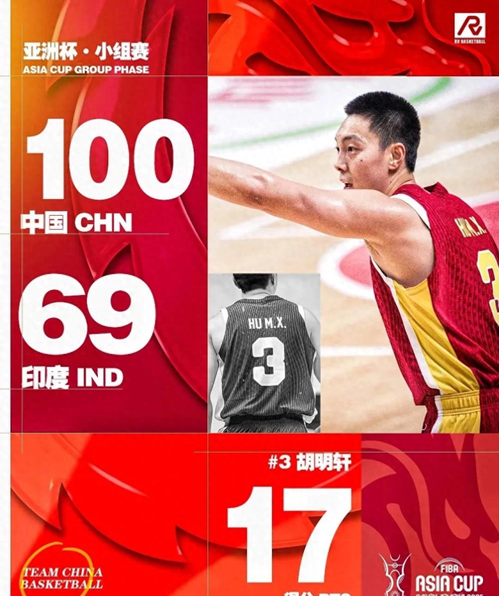 亚洲杯小组赛,中国男篮迎来小组赛的第二个对手印度男篮,经过四节的激烈较量,中国男篮以大比分击败了印度男篮,31分的巨大优势,也成了辽宁球迷以此的攻击胡明轩的把柄,真的不能理解他们,为什么会这样对待一个为国征战的球员。