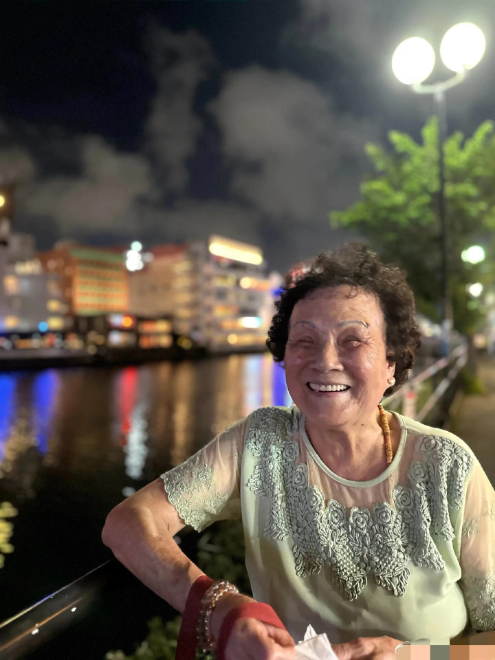 除了费曼和吴镇宇夫妇俩,他们还带了其他家人一起同游日本,费曼晒出一个老婆婆的照片,应该是吴镇宇的老母亲,面相慈爱,精神很好。