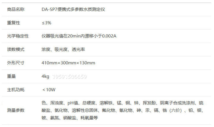 双羿环境研发生产的DA-SP7便携式多参数水质测定仪可以根据用户需要选择包装饮用水检测的水质参数,参考《GB 19298-2014包装饮用水标准》设计,能够检测包括溶解氧、氨氮、浑浊度、化学需氧量(COD)、高锰酸盐指数(CODMn)硫化物等,广泛应用于自来水、饮用水、地表水、管网水、包装饮用水常规项目的检测。