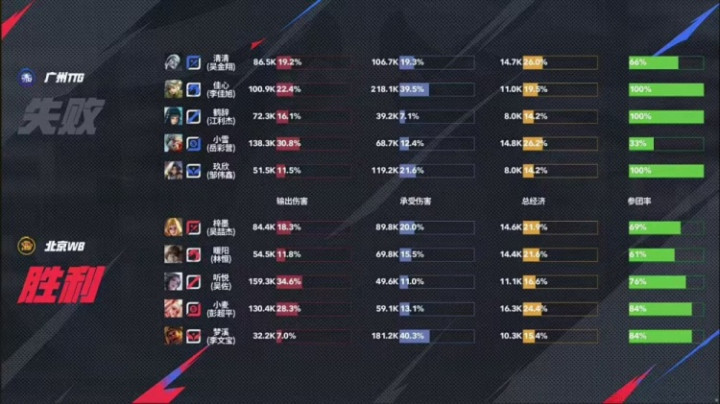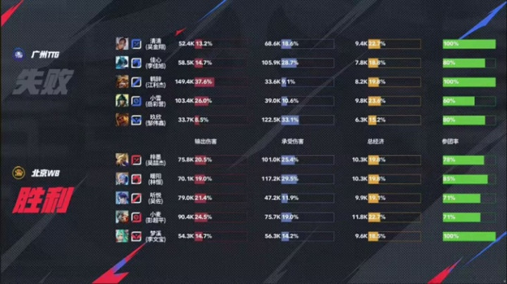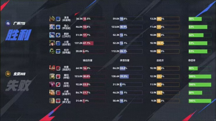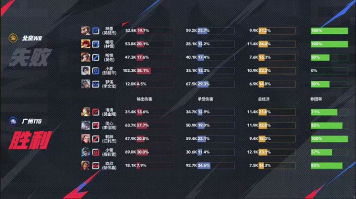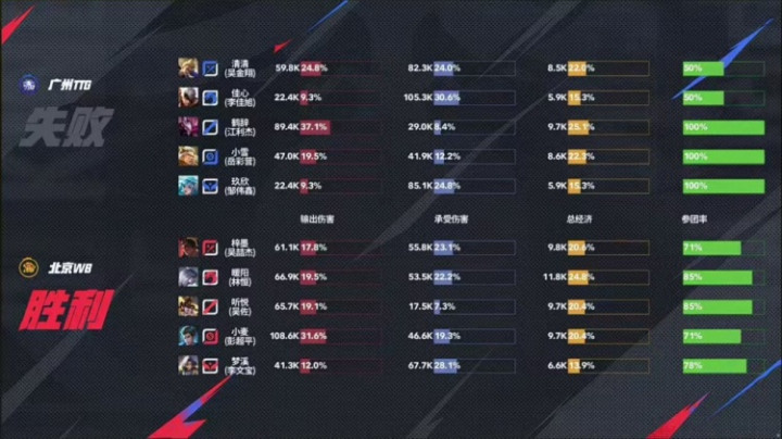 直播吧8月24日讯2025KPL季后赛胜者组第一轮本场比赛是由北京WB对阵到广州TTG!第一局:WB中期发力反手团战打懵TTG,WB成功先拿一分!第二局:双方前期互相抓机会成功将比赛拖入20分钟,20分钟WB拿下龙王后团灭TTG拿下胜利!第三局:TTG前期主动进攻打开局面,WB被TTG拿下一分!第四局:TTG前期抱团抓机会打出掉点节奏,但是WB野抓机会成功扳回局面,20分钟关键团关羽进场输出拉满帮助TTG扳平比分!第五局:双方前期和平发育,TTG凭借曹操发挥打赢关键团战成功先拿赛点!第六局:WB前期打开局面后一路滚大经济,WB成功扳平比分!第七局:WB鲁班父子体系被TTG打崩,TTG轻松拿下巅峰对决!