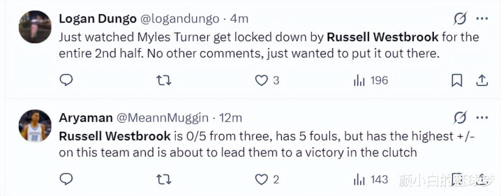 国王球迷们都对威少的表现送上赞誉:整个下半场威少都紧紧贴防迈尔斯-特纳,我只想让大家知道威少很努力;