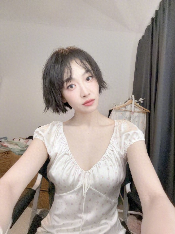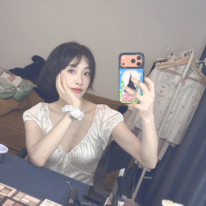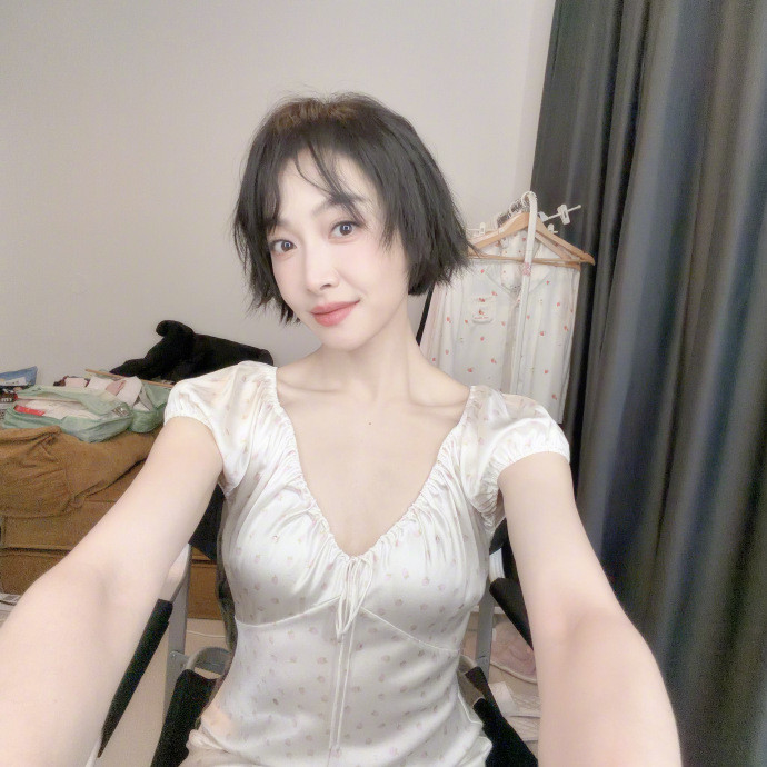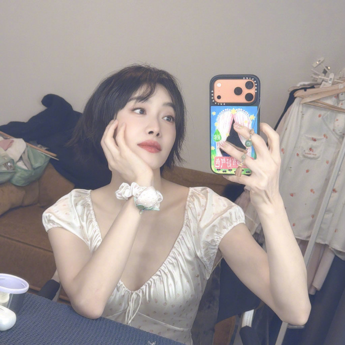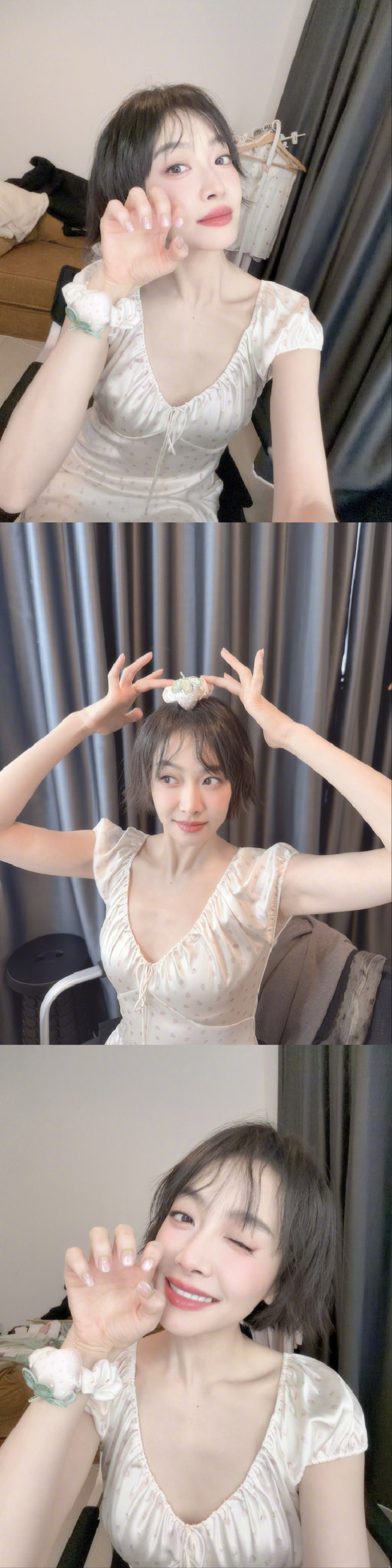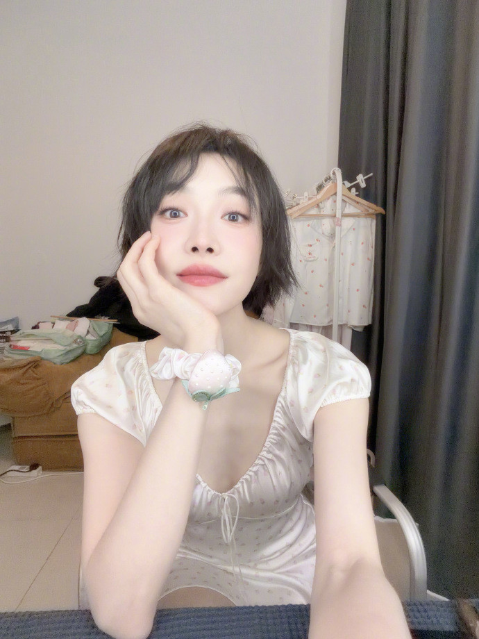 宋茜居家穿着草莓印花睡衣写真, 可爱又纯欲