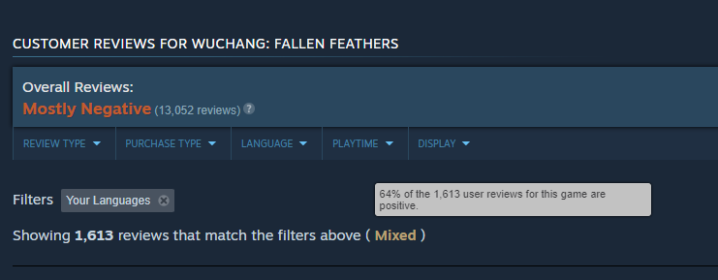 英文评论区评分显示游戏好评率64%“褒贬不一”,而非差评如潮