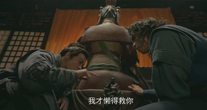 最后洪七躲在柱子后面,段智兴躲在佛像后面,两人轻轻松松地就甩开了追兵。