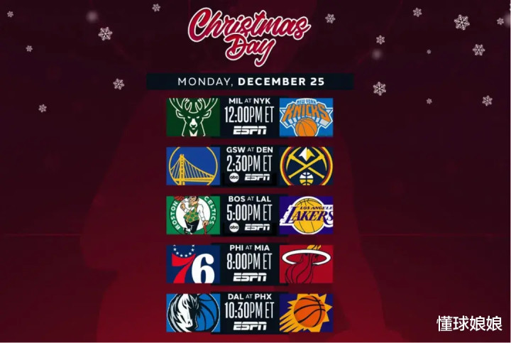 就是,这东部能打圣诞大战的就骑士和尼克斯呀,剩下的4场全部都是西部球队。东部这……2年前的圣诞大战,都还是东西部各5支球队呢。