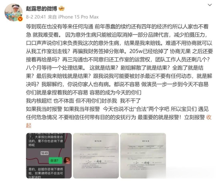 而在此之前,赵露思公开喊话经纪公司银河酷娱,却没得到回应,于是她发长文进行控诉,一下子就引发了广泛关注。之后的几天,赵露思一直在网上开直播,和网友们交流互动。