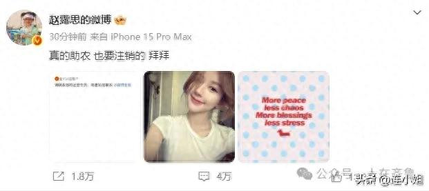 此前在直播时,赵露思就提过要注销微博,当得知需要15天冷静期时,她还吐槽说:“我跟你离婚呐,有啥好冷静的?”要知道,赵露思的微博粉丝可是超过3117万呢。