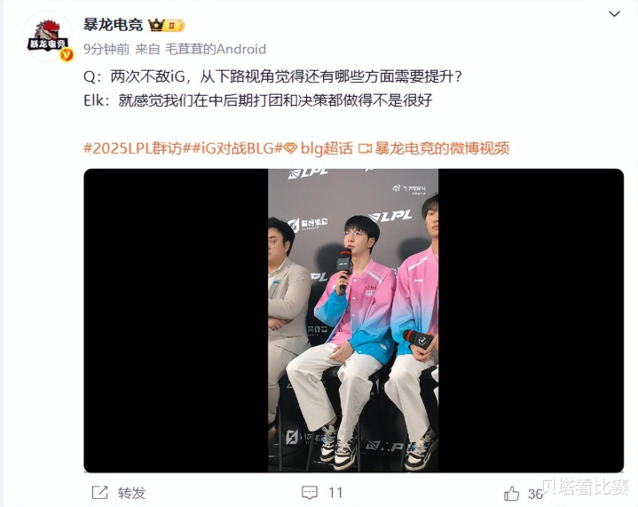 ELK被问到连续两次不敌IG的原因,ELK表示:是在中后期打团和决策做得不够好。