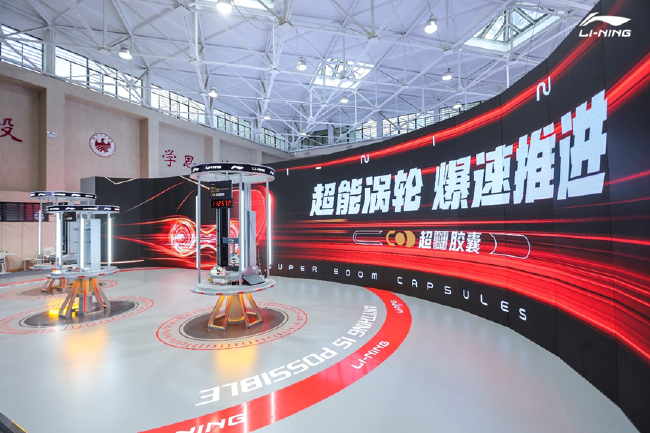 本届大会以“体育高质量发展的科学引领与科技赋能”为主题,三十余项科技成果亮相,吸引参会者纷纷体验。活动中,李宁公司最新研发的超䨻胶囊科技气垫对外亮相,参展团队特意布置了三个实验装置,用以直观展示气垫的回弹能力。