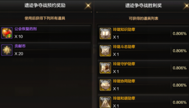 而获得公会战胜利的玩家可以获得到这个遗迹争夺战胜利奖礼盒,这个礼盒可是能开出史诗级公会勋章的,而全民都有这免费领取到这史诗勋章的机会。但这却是有一个条件的,那就是必须公会战胜利的玩家才有机会获得到史诗勋章,要是输了的话只有安慰奖了。所以说这公会战的争夺势必会非常激烈的,而如果大家公会中的土豪大佬非常多的话,那么恭喜了啊,可以躺赢领到这史诗勋章了。